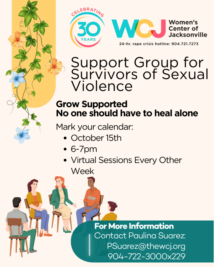 Stay Tuned for Updated Information Regarding our In Person and Virtual Support Groups for Survivors of Sexual Violence in Duval and Nassau Counties.