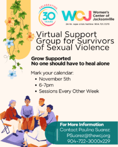 The Women’s Center of Jacksonville offers a virtual support group for survivors to connect, share, and grow in a safe and confidential space.